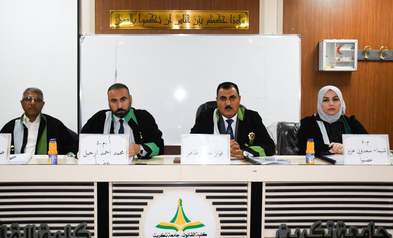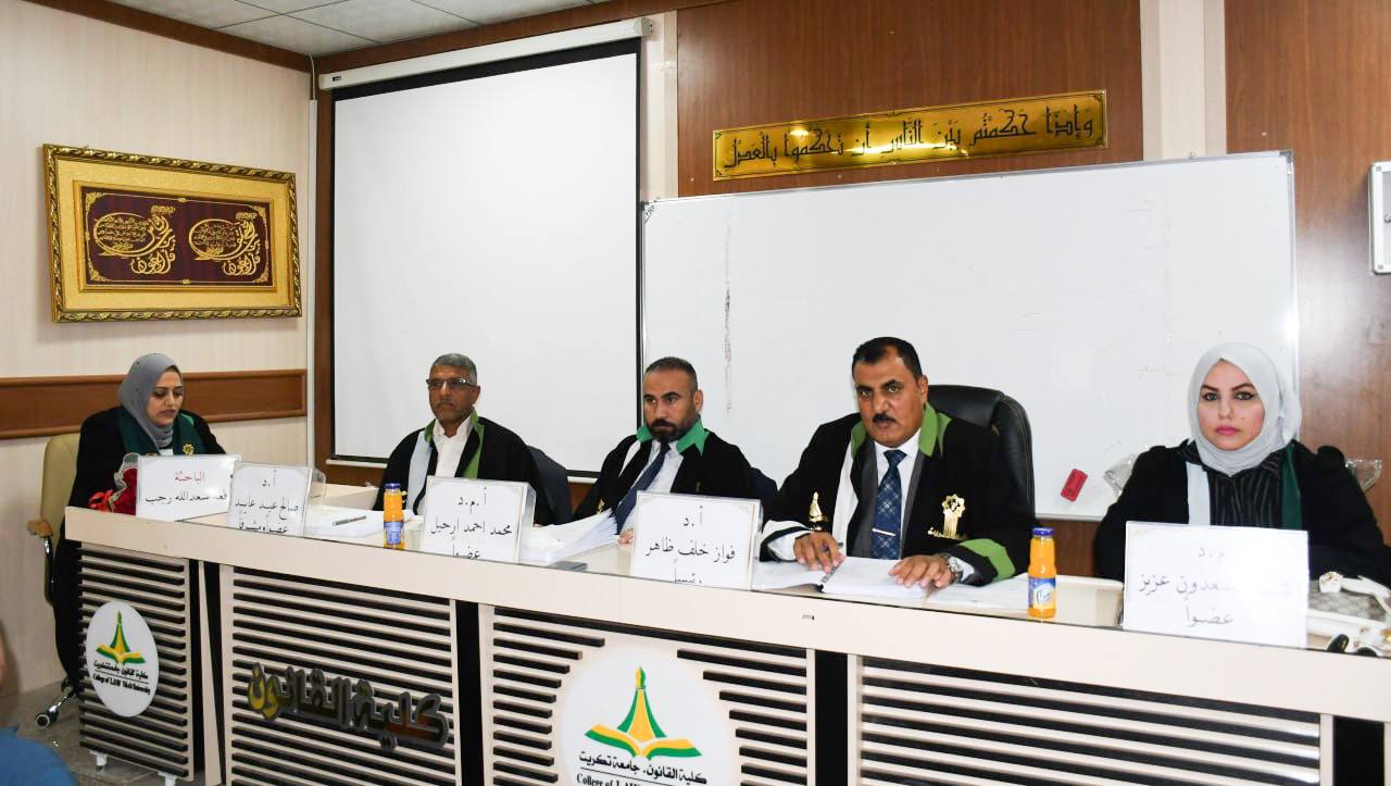 نوقشت في كلية القانون - جامعة تكريت رسالة ماجستير في القانون العام للطالبة (رفعة سعدالله رجب) والموسومة ب (فاعلية اجهزة الضبط الاداري في حماية البيئة- دراسة مقارنة) وعلى قاعة (السمنار) صباح يوم الاثنين الموافق 16-9-2024.