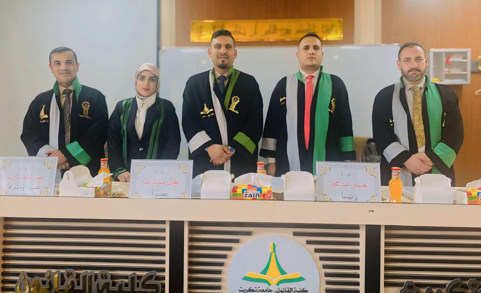 نوقشت في كلية القانون - جامعة تكريت رسالة ماجستير في القانون الخاص للطالبة (سرى سعد عبدالكريم) والموسومة ب (تطويع النصوص القانونية في احكام الدعوى الحادثة - دراسة مقارنة) وذلك على قاعة السمينار في مبنى الكلية صباح يوم الخميس الموافق 22-8-2024.