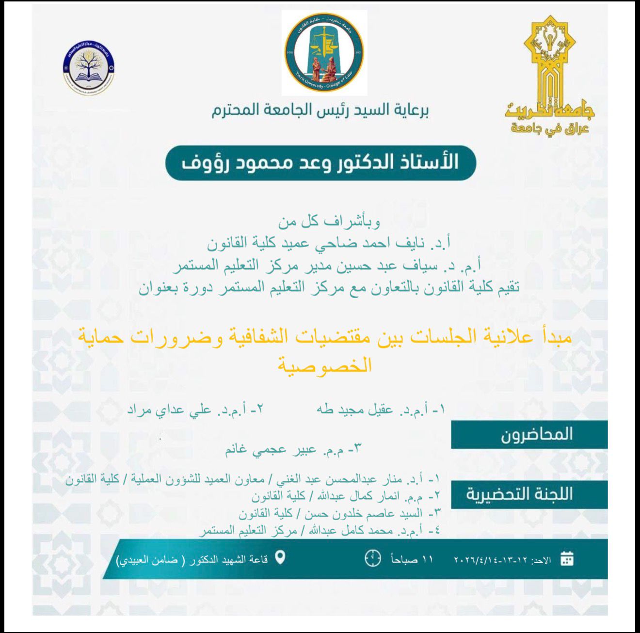 - تطوير مخرجات الكلية علمياً وادارياً بما يخدم سوق العمل وسوح القضاء.