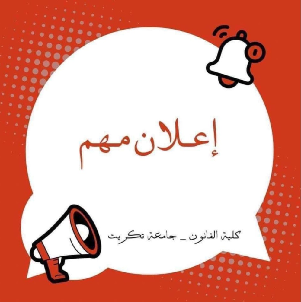 على جميع الطلبة المقبولين في كلية القانون للعام الدراسي ٢٠٢٤-٢٠٢٥ وللدراستين الصباحية والمسائية الذين لم يسلموا وثائقهم الاصلية الاسراع بتسليمها لغاية نهاية الدوام الرسمي ليوم الاثنين القادم والمصادف 26-5-2025 وبخلافه سيتم إلغاء قبول الطالب من الكلية