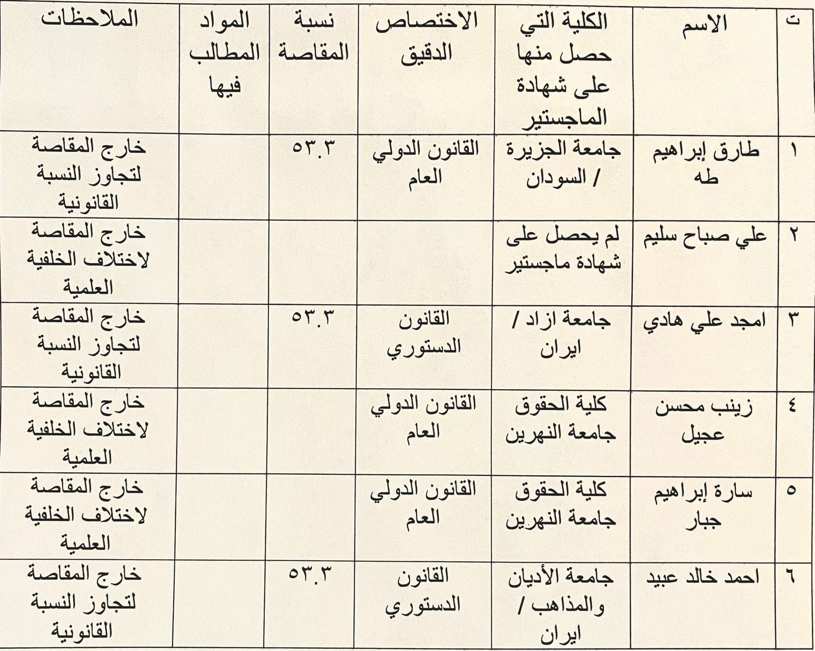 🟣اعلان نتائج المقاصة للمتقدمين لدراسة الدكتوراه(القانون العام) في كلية القانون -جامعة تكريت للعام الدراسي2024-2025.