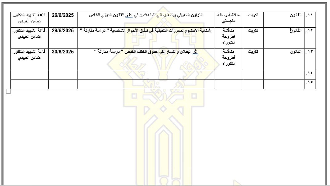 استمارة النشاطات المستقبلية لكلية القانون لشهر (حزيران) 2025..