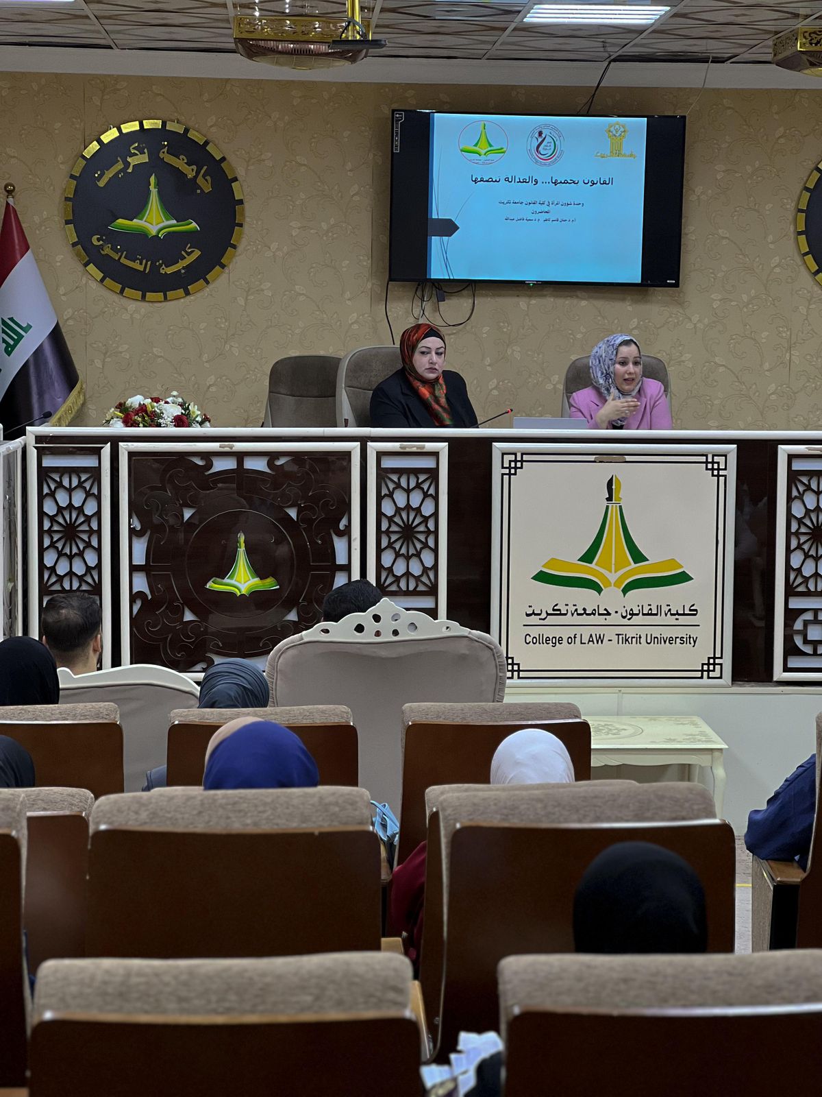 وحدة شؤون المرأة في كلية القانون – جامعة تكريت تقيم ندوة علمية متخصصة بعنوان “حماية الأمومة والطفولة في اطار قانون العمل رقم 37 لسنة 2015”.