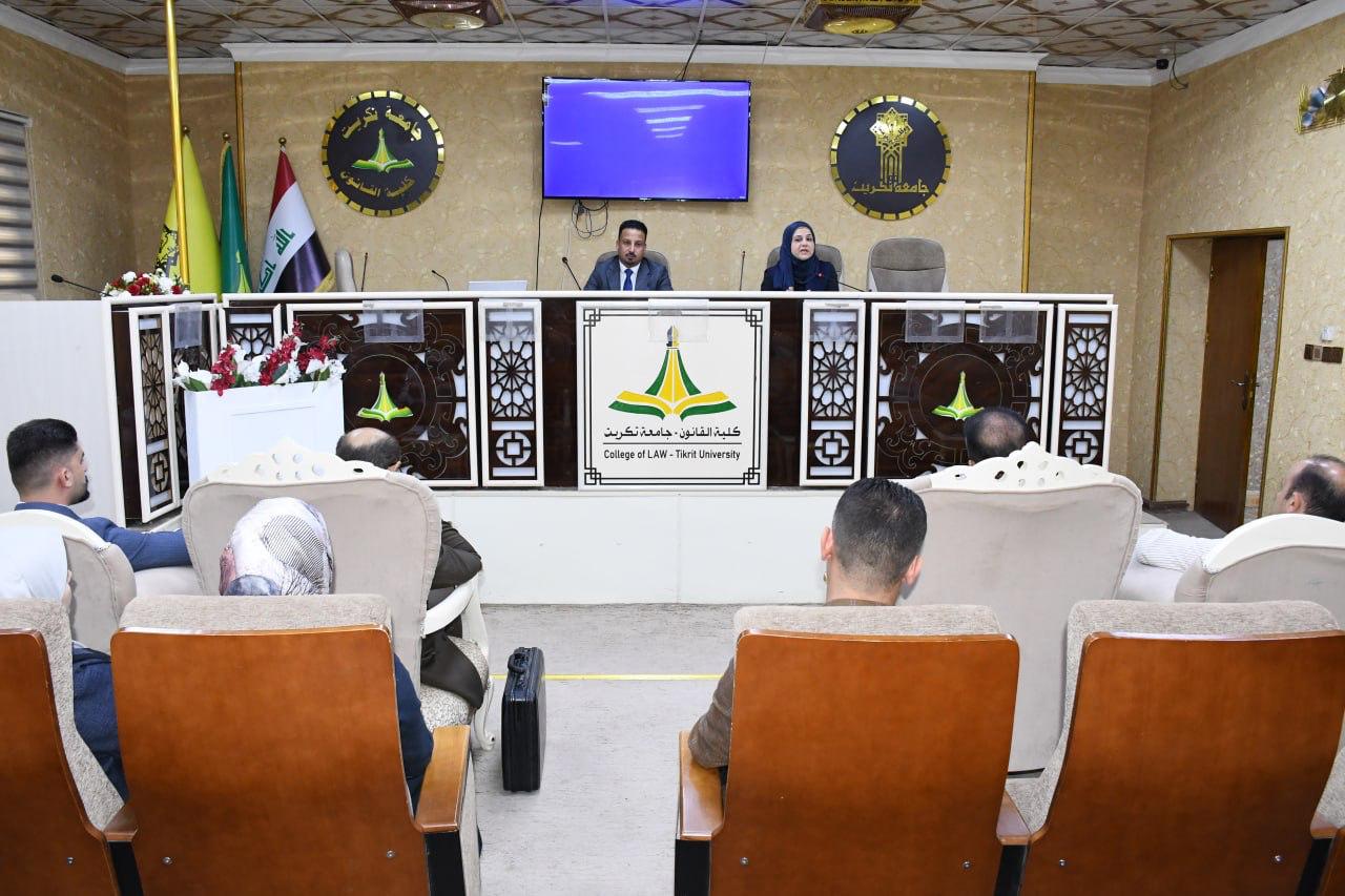 كلية القانون – جامعة تكريت تنظم دورة علمية بعنوان (حدود الاستخدامات العلمية القانونية للبرمجيات الإلكترونية في تطوير مهارات طلبة الدراسات العليا)