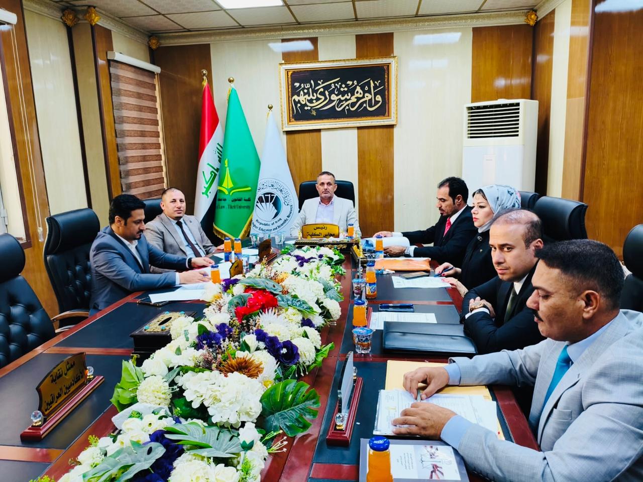 عقد مجلس الكلية صباح يوم الاربعاء الموافق 22-10-2025 جلسته الرابعة ، بحضور السيد رئيس المجلس الاستاذ الدكتور نايف احمد ضاحي ، وحضور اعضاء المجلس كافة وقد ناقش المجلس عدد من المواضيع المطروحة مع جدول اعماله واتخذ القرارات المناسبة بشأنها سائلين الباري عز وجل ان يوفق الجميع لما فيه خدمة بلدنا الحبيب.