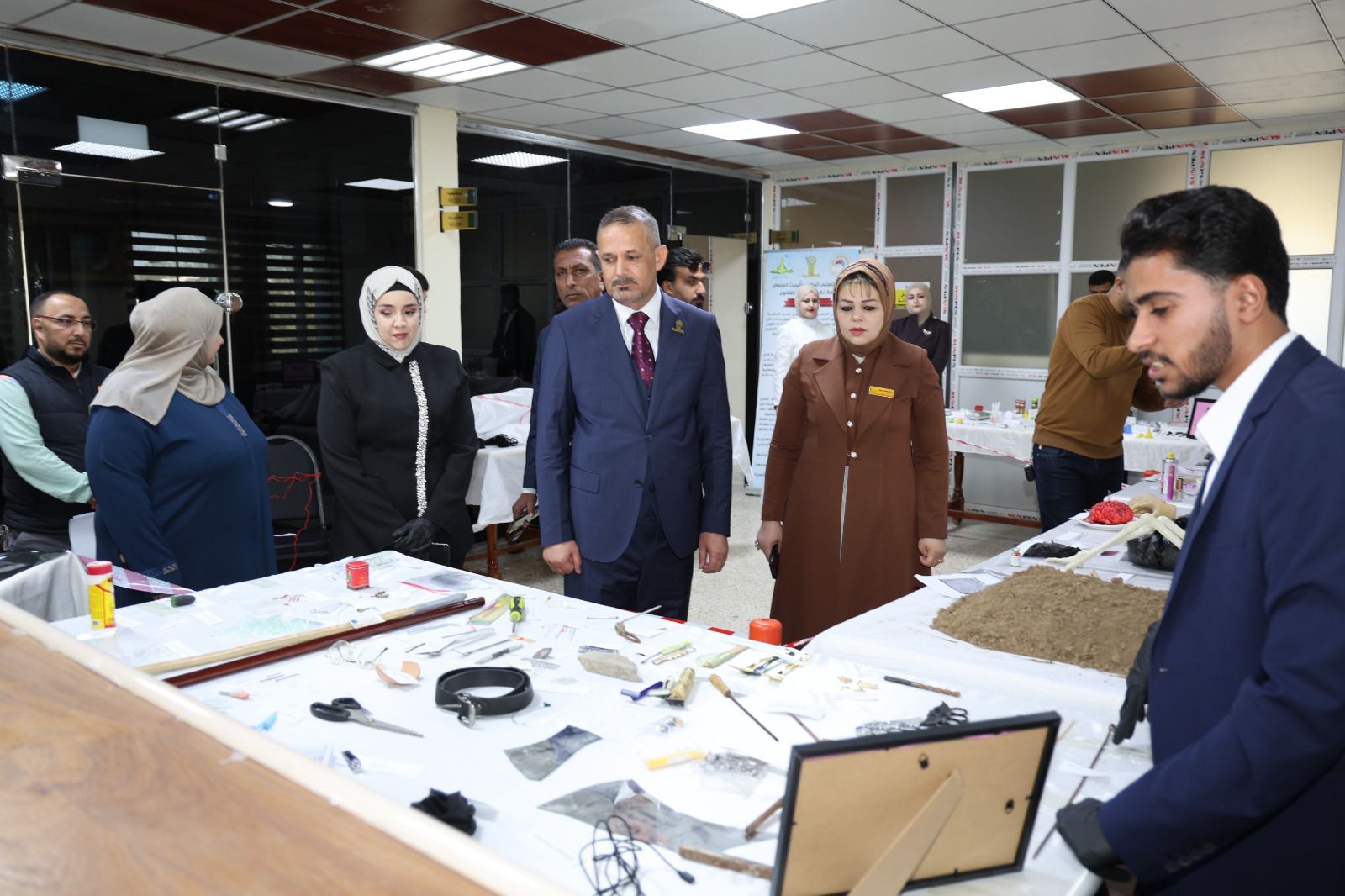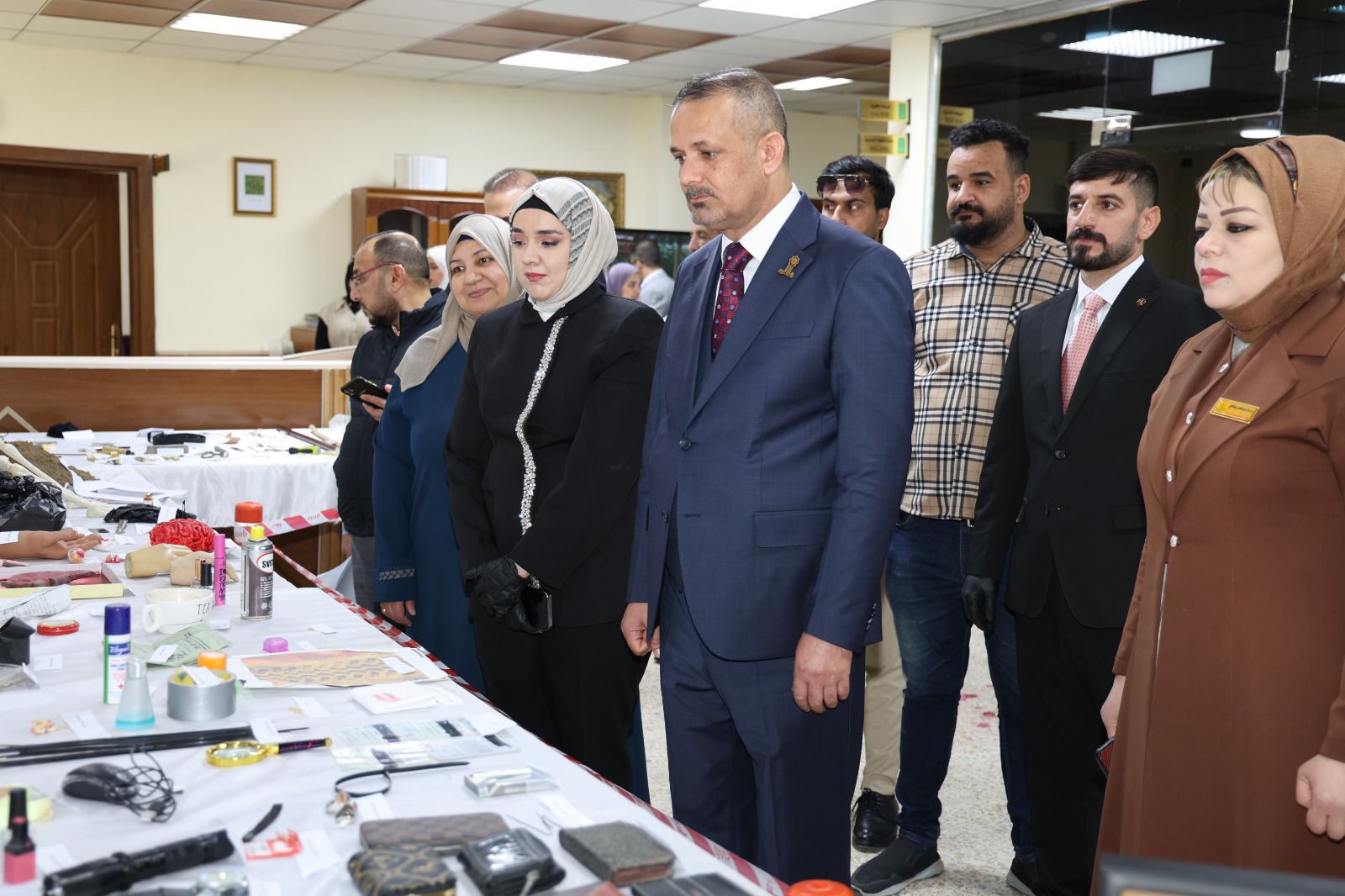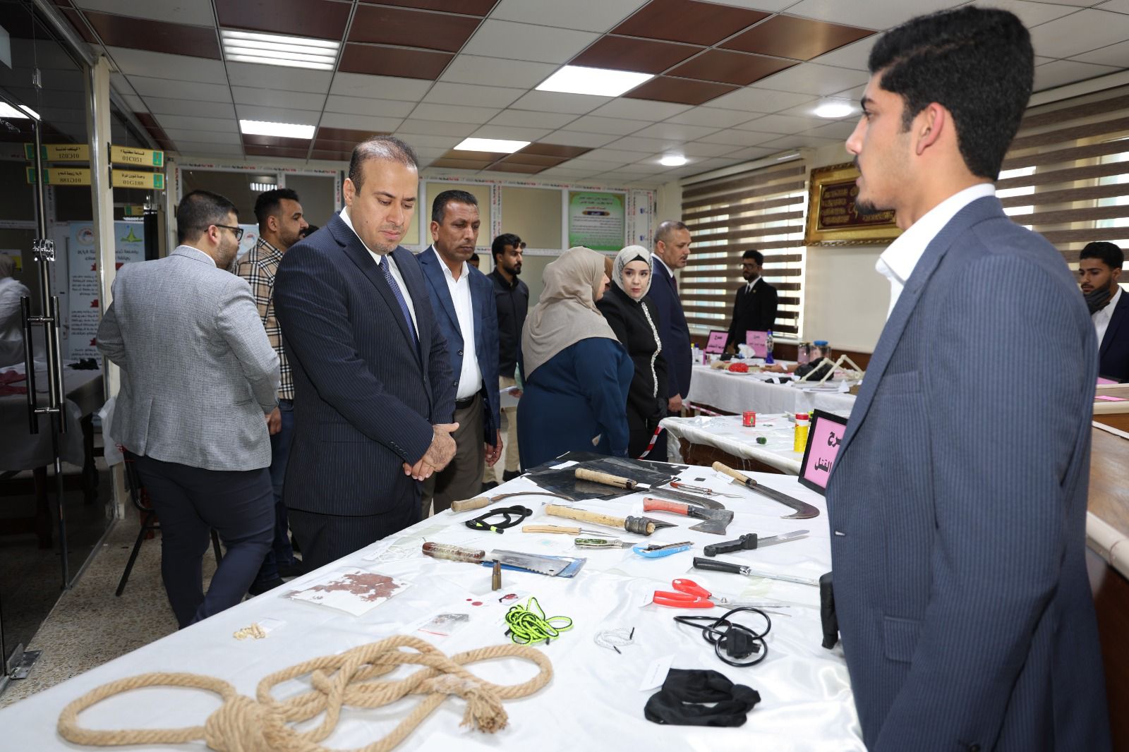 أقامت كلية القانون - جامعة تكريت معرضًا علميًا للأدلة الجنائية صباح يوم الاربعاء الموافق 8-4-2026 وذلك على مكتبة الكلية ضمن نشاطاتها الأكاديمية الهادفة إلى تعزيز الجانب التطبيقي لدى الطلبة وربط الجوانب النظرية بالتطبيق العملي في المجال القانوني ، وشهد المعرض عرض نماذج متنوعة من الأدلة الجنائية المستخدمة في التحقيقات، مثل البصمات، والأدلة البيولوجية، ووسائل الكشف الحديثة، فضلاً عن تقديم شروحات تفصيلية حول آليات جمع الأدلة وتحليلها وفق الأسس العلمية والقانونية المعتمدة ،كما تضمن المعرض مشاركة فاعلة من قبل طلبة الكلية بإشراف أساتذتهم، حيث قدموا عروضًا توضيحية عكست مدى فهمهم لأهمية الأدلة الجنائية في تحقيق العدالة وكشف الجرائم ، ويأتي تنظيم هذا المعرض في إطار حرص الكلية على تطوير مهارات طلبتها وتهيئتهم لسوق العمل، بما يسهم في رفد المؤسسات القضائية والأمنية بكوادر قانونية مؤهلة تمتلك المعرفة النظرية والخبرة التطبيقية.
