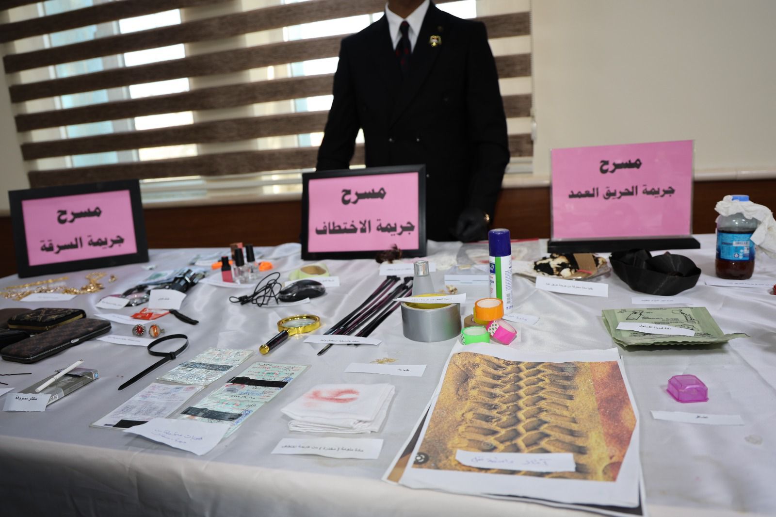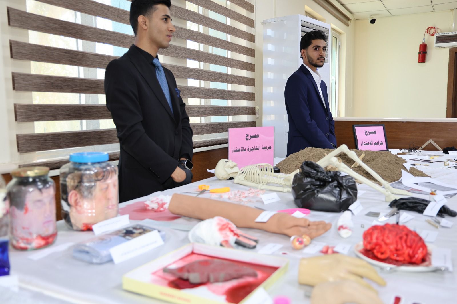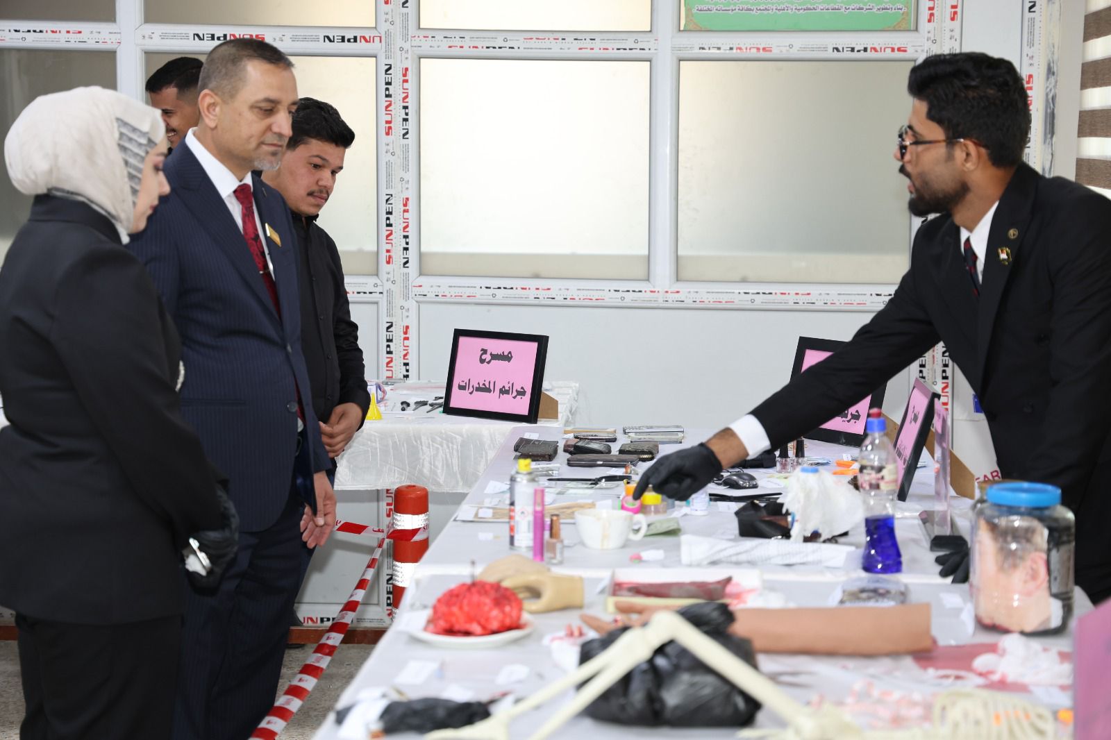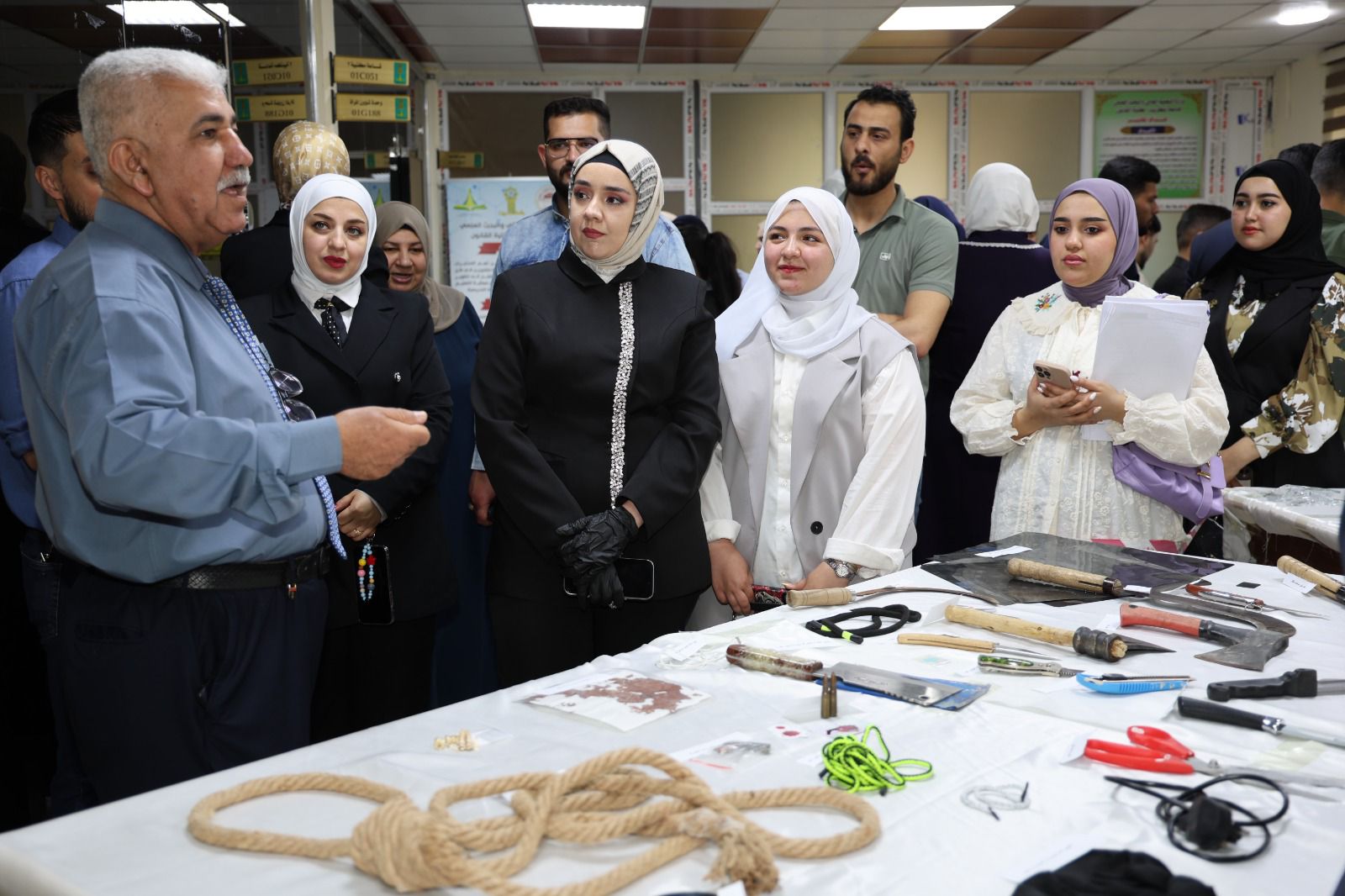 أقامت كلية القانون - جامعة تكريت معرضًا علميًا للأدلة الجنائية صباح يوم الاربعاء الموافق 8-4-2026 وذلك على مكتبة الكلية ضمن نشاطاتها الأكاديمية الهادفة إلى تعزيز الجانب التطبيقي لدى الطلبة وربط الجوانب النظرية بالتطبيق العملي في المجال القانوني ، وشهد المعرض عرض نماذج متنوعة من الأدلة الجنائية المستخدمة في التحقيقات، مثل البصمات، والأدلة البيولوجية، ووسائل الكشف الحديثة، فضلاً عن تقديم شروحات تفصيلية حول آليات جمع الأدلة وتحليلها وفق الأسس العلمية والقانونية المعتمدة ،كما تضمن المعرض مشاركة فاعلة من قبل طلبة الكلية بإشراف أساتذتهم، حيث قدموا عروضًا توضيحية عكست مدى فهمهم لأهمية الأدلة الجنائية في تحقيق العدالة وكشف الجرائم ، ويأتي تنظيم هذا المعرض في إطار حرص الكلية على تطوير مهارات طلبتها وتهيئتهم لسوق العمل، بما يسهم في رفد المؤسسات القضائية والأمنية بكوادر قانونية مؤهلة تمتلك المعرفة النظرية والخبرة التطبيقية.