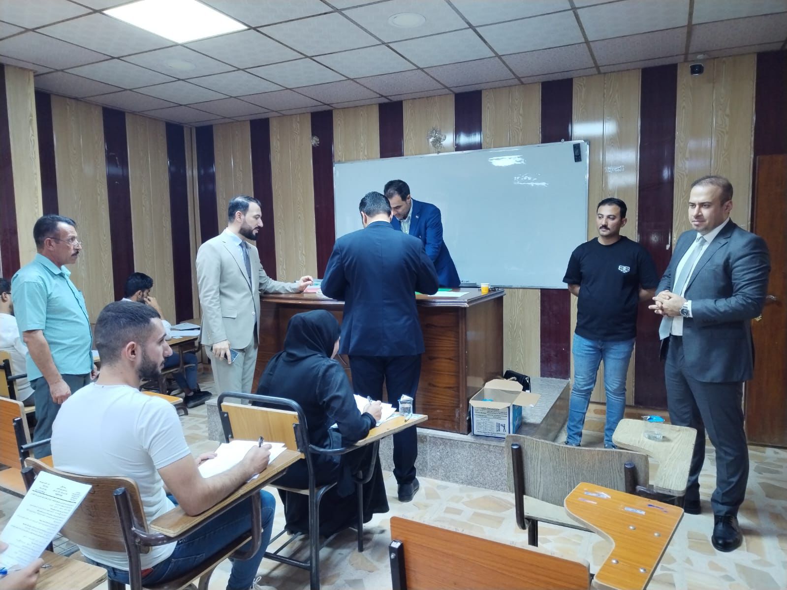 زارت اللجنة المكلفة بمتابعة سير الامتحانات النهائية للعام الدراسي2023-2024 (الدور الثاني) كلية القانون للإطلاع على سير العملية الامتحانية وتوفير كافة المتطلبات انجاح الامتحانات حسب التعليمات الوزارية المعتمدة وقد رافق اللجنة في جولتها الاستاذ المساعد الدكتور علي حسين گعود معاون العميد للشؤون الإدارية،سائلين المولى عز وجل ان يوفق الجميع لما فيه خيراً للعراق وسموه.