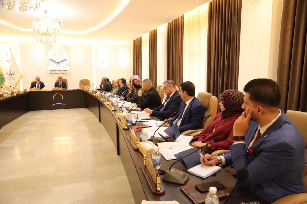 شارك عميد كلية القانون بجامعة تكريت الاستاذ الدكتور نايف احمد ضاحي في اجتماع لجنة عمداء كليات القانون في الجامعات العراقية والذي استضافته كلية الإمام الكاظم (عليه السلام) للعلوم الإسلامية الجامعة في بغداد، صباح يوم الخميس الموافق ٣٠ تشرين الأول ٢٠٢٥، بحضور السيد رئيس لجنة عمداء كليات القانون الأستاذ الدكتور ميري الخيكاني، والسيدات والسادة عمداء كليات القانون في الجامعات العراقية.