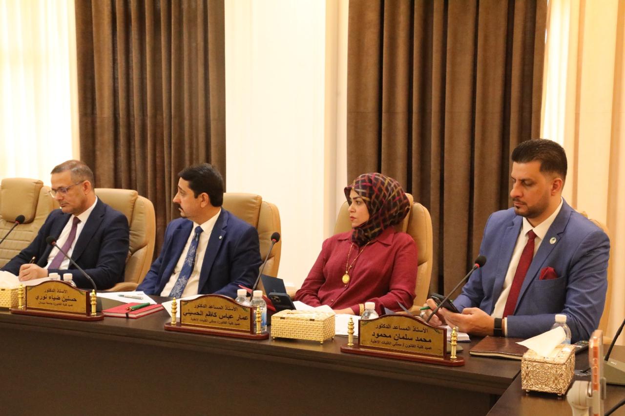 من جانبه افاد السيد عميد الكلية حرص جامعة تكريت وكلية القانون على دعم خطط وزارة التعليم العالي والبحث العلمي وتفعيل البرامج العلمية التي تسهم في تطوير أداء كليات القانون، وبما يعزز جودة المخرجات الأكاديمية والبحثية ويرسخ قيم العدالة وسيادة القانون في المجتمع.
