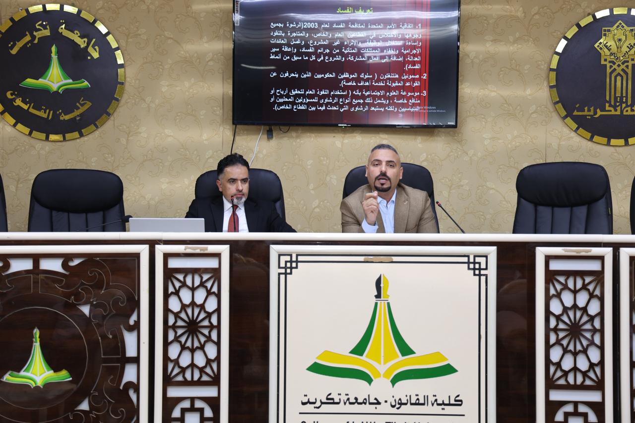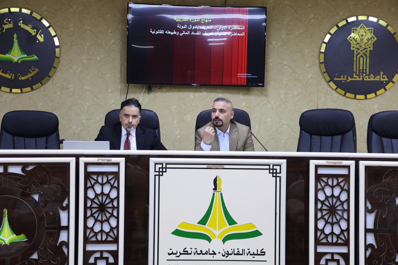 تنفيذاً لتوجيهات الأمانة العامة لمجلس الوزراء، وبرعاية السيد رئيس جامعة تكريت الأستاذ الدكتور وعد محمود رؤوف، قسم الشؤون القانونية في رئاسة الجامعة تقيم دورة تدريبية وبالتعاون مع مركز التعليم المستمر حول مكافحة الفساد وذلك يوم الأحد الموافق 19-4-2026 وذلك على قاعة الشهيد الدكتور ضامن العبيدي،واستهدفت الدورة السادة القانونيين من حملة شهادتي البكالوريوس والماجستير العاملين في كليات وأقسام وشُعب رئاسة الجامعة، بهدف تعزيز الوعي القانوني وترسيخ مبادئ النزاهة والشفافية في بيئة العمل المؤسسي ،وتضمنت الدورة محاور عدة ركزت على مفهوم الفساد الإداري والمالي، وأسبابه وآثاره على مؤسسات الدولة، فضلاً عن استعراض أبرز التشريعات والإجراءات القانونية الكفيلة بالحد منه، إضافة إلى آليات الوقاية وتعزيز ثقافة الإبلاغ عن حالات الفساد.