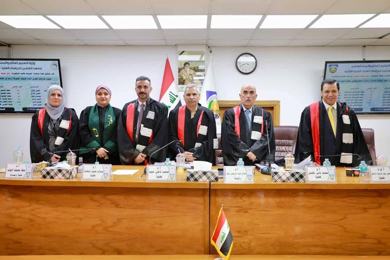 شارك الاستاذ الدكتور حسام حميد شهاب التدريسي على ملاك كليتنا في مناقشة أطروحة الدكتوراه بمعهد العلمين للدراسات العليا في النجف للباحثة (آفاق محمد محمود) الموسومة (تسوية منازعات المجاري المائية الدولية المشتركة دراسة في أحكام وفتاوى محكمة العدل الدولية) سائلين المولى عز وجل ان يوفق الجميع لما فيه خيراً للعراق وسموه..