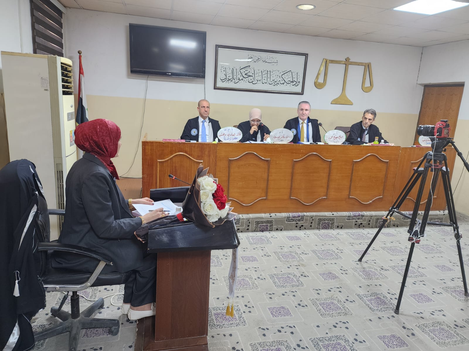 ترأس الاستاذ الدكتور صباح مصباح محمود هذا اليوم الثلاثاء ٢٠٢٥/٧/١ لجنة مناقشة رسالة ماجستير في كلية القانون بجامعة بغداد والموسومة ب ( الحماية الجنائية للبيئة الهوائية/ دراسة مقارنة) وفي نهاية المناقشة تم تكريمه بكتاب شكر وتقدير من السيد عميد الكلية الأستاذ الدكتور علي هادي عطية على جهوده العلمية متمنيا له دوام التواصل خدمة للعلم وطلابه.