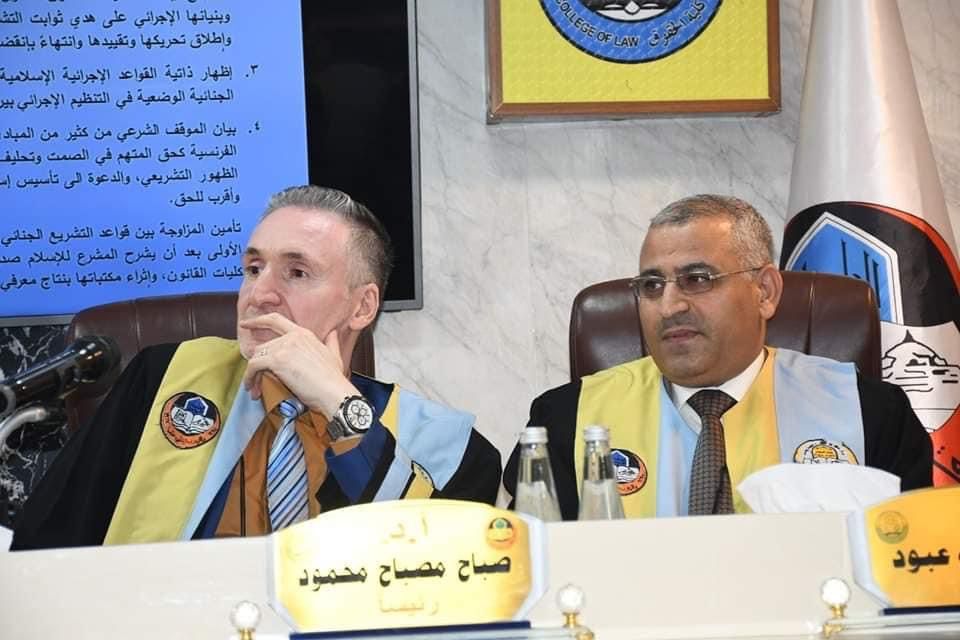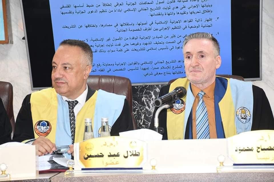 ترأس الاستاذ الدكتور صباح مصباح محمود التدريسي على ملاك كليتنا لجنة مناقشة اطروحة دكتوراه في كلية القانون بجامعة الموصل والموسومة"اتساق الاجراءات الجنائية طبقاً لثوابت احكام الاسلام-دراسة مقارنة" للطالب (كاظم جعفر احمد) صباح يوم الخميس الموافق 6-6-2024 .