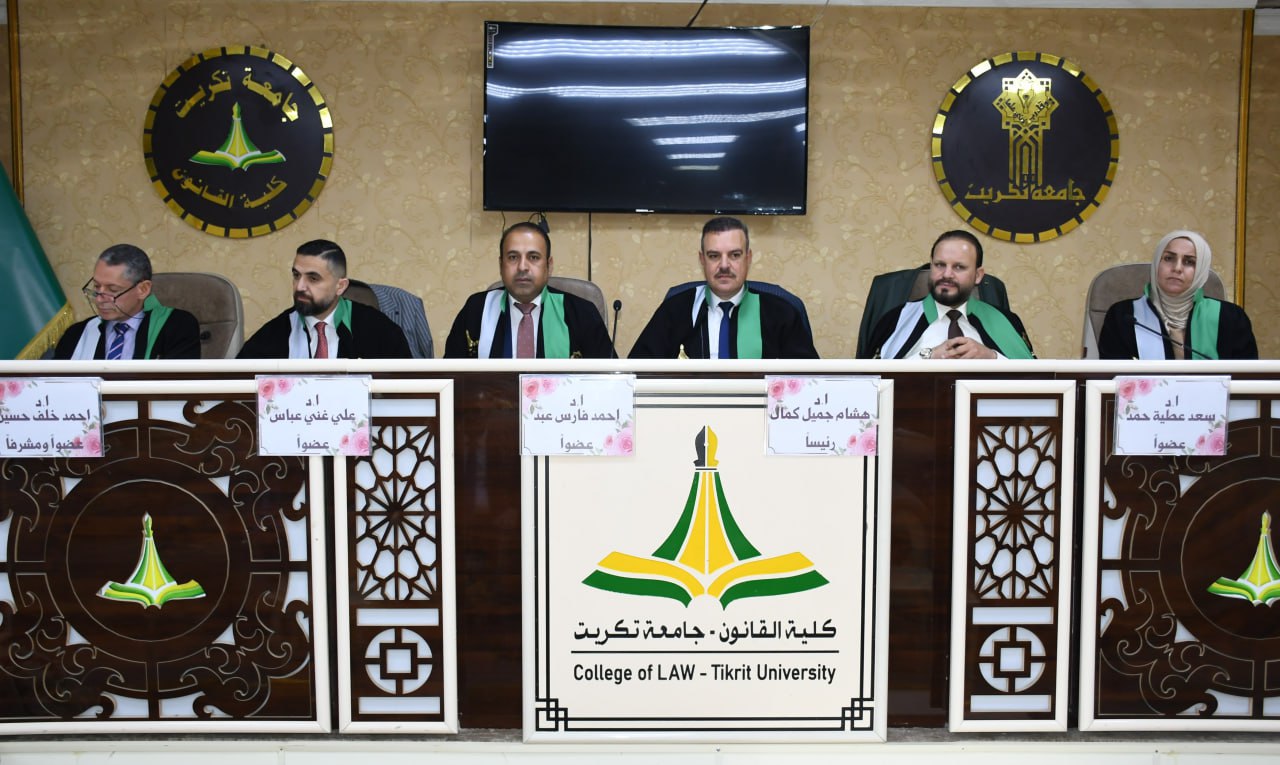 نوقشت في كلية القانون - جامعة تكريت اطروحة دكتوراه في القانون العام للطالب (احمد جابر حميد) والموسومة ب (التنظيم الدستوري للايرادات النفطية في العراق) على قاعة الشهيد الدكتور ضامن العبيدي في مبنى الكلية صباح يوم الاثنين الموافق 17-3-2025.