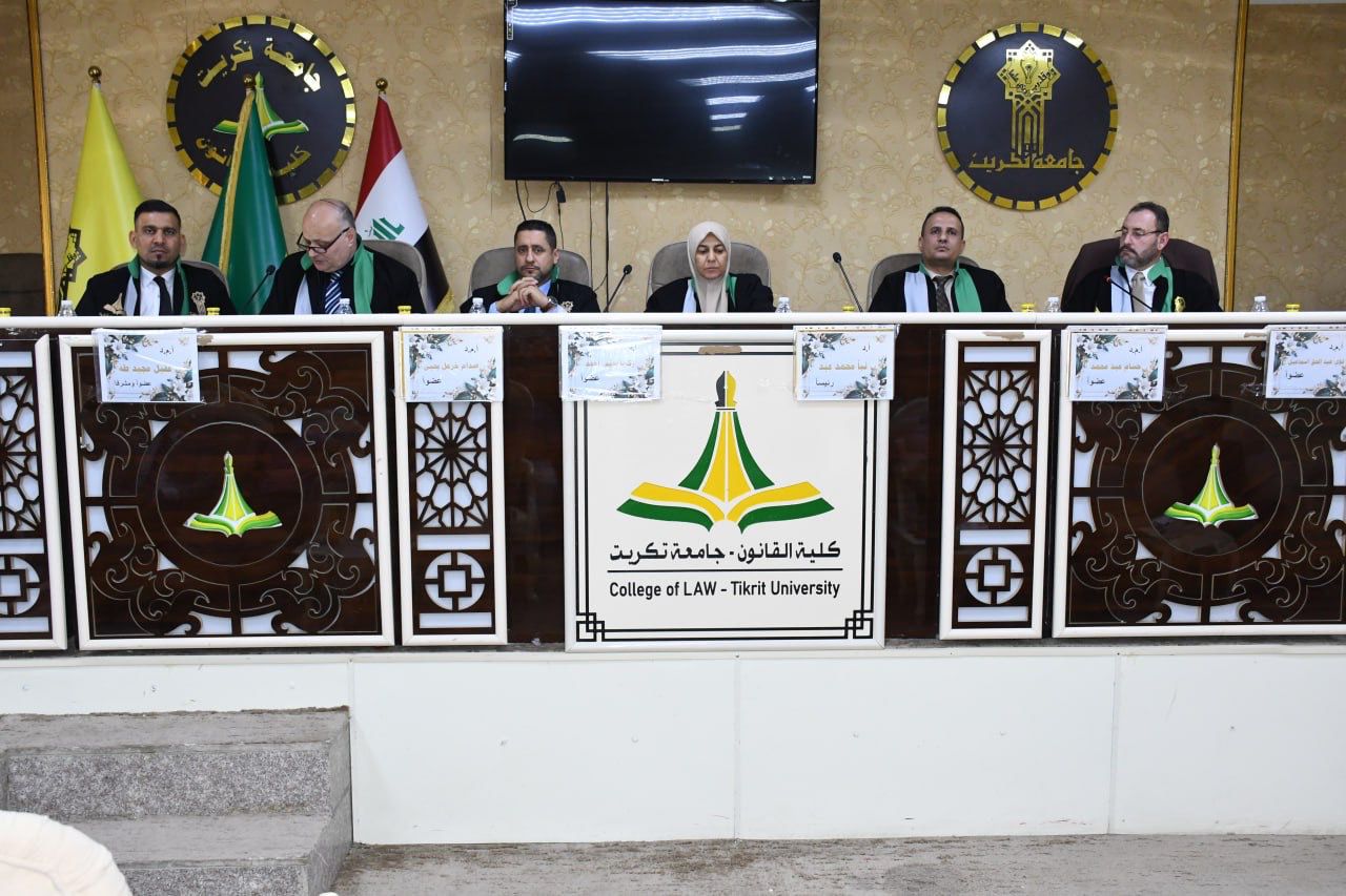 نوقشت في كلية القانون - جامعة تكريت اطروحة دكتوراه في القانون الخاص للطالب (حسام حامد عبيد) والموسومة ب (البطلان في دعوى التحكيم - دراسة مقارنة) على قاعة الشهيد الدكتور ضامن العبيدي في مبنى الكلية صباح يوم الاحد الموافق 7-9-2025.