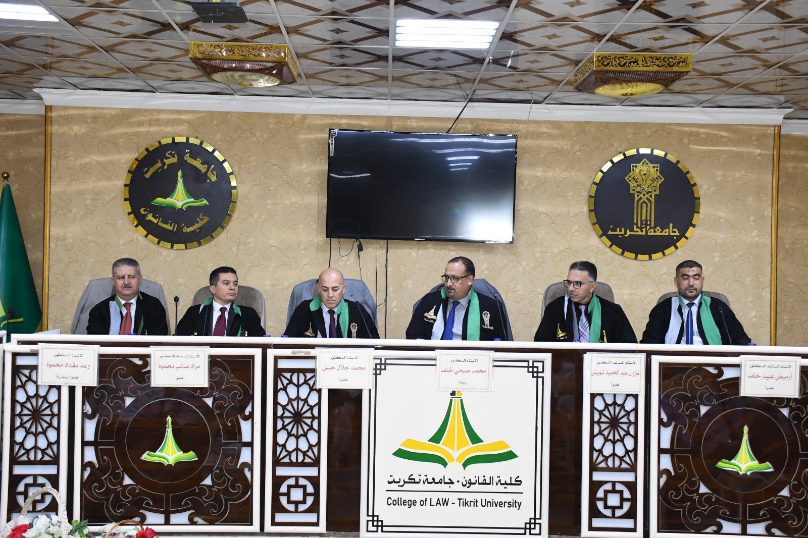 نوقشت في كلية القانون - جامعة تكريت اطروحة دكتوراه في القانون الخاص للطالب (يعقوب حسن محمد) والموسومة ب (ا المركز القانوني لمتعددي وعديمي الجنسية - دراسة مقارنة) على قاعة الشهيد الدكتور ضامن العبيدي في مبنى الكلية صباح يوم الاربعاء الموافق 20-8-2025.