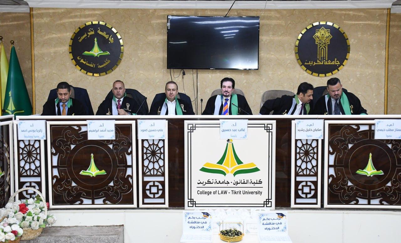 نوقشت في كلية القانون - جامعة تكريت اطروحة دكتوراه في القانون الخاص للطالب (أسين فرحان جاسم) والموسومة ب ( التنظيم القانوني للحساب المصرفي متعدد الأطراف- دراسة مقارنة) وذلك على قاعة الشهيد الدكتور ضامن العبيدي في مبنى الكلية صباح يوم الاثنين الموافق 28-7-2025
