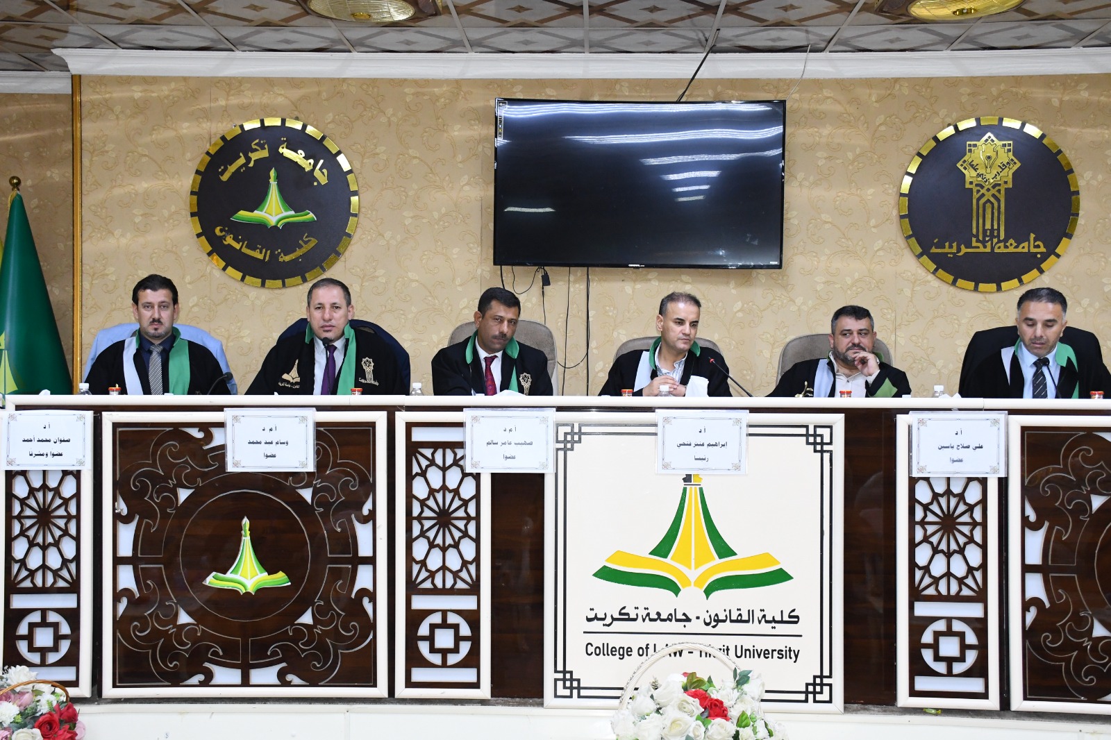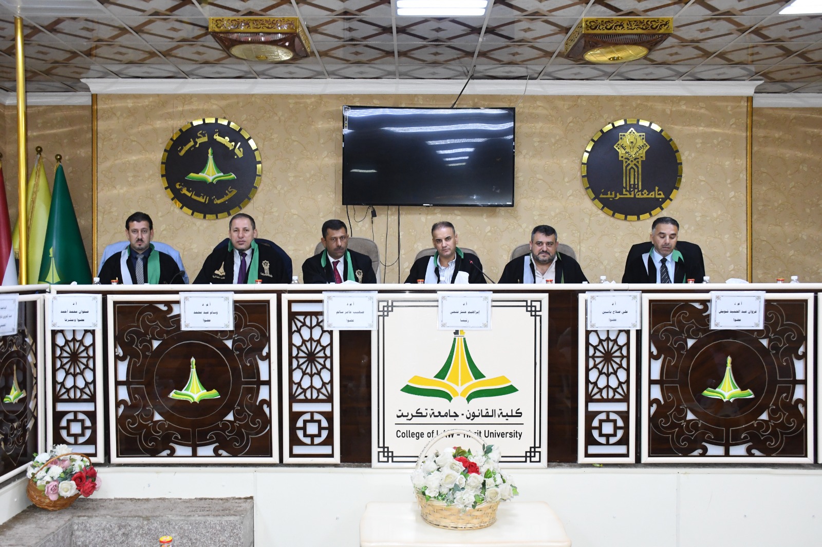 نوقشت في كلية القانون - جامعة تكريت اطروحة دكتوراه في القانون المدني الخاص للطالب (عبدالعزيز داود خلف) والموسومة ب ( التنظيم القانوني للتنازل عن عقد المقاولة - دراسه مقارنة) وذلك على قاعة الشهيد الدكتور ضامن العبيدي في مبنى الكلية صباح يوم الاربعاء الموافق 16-7-2025