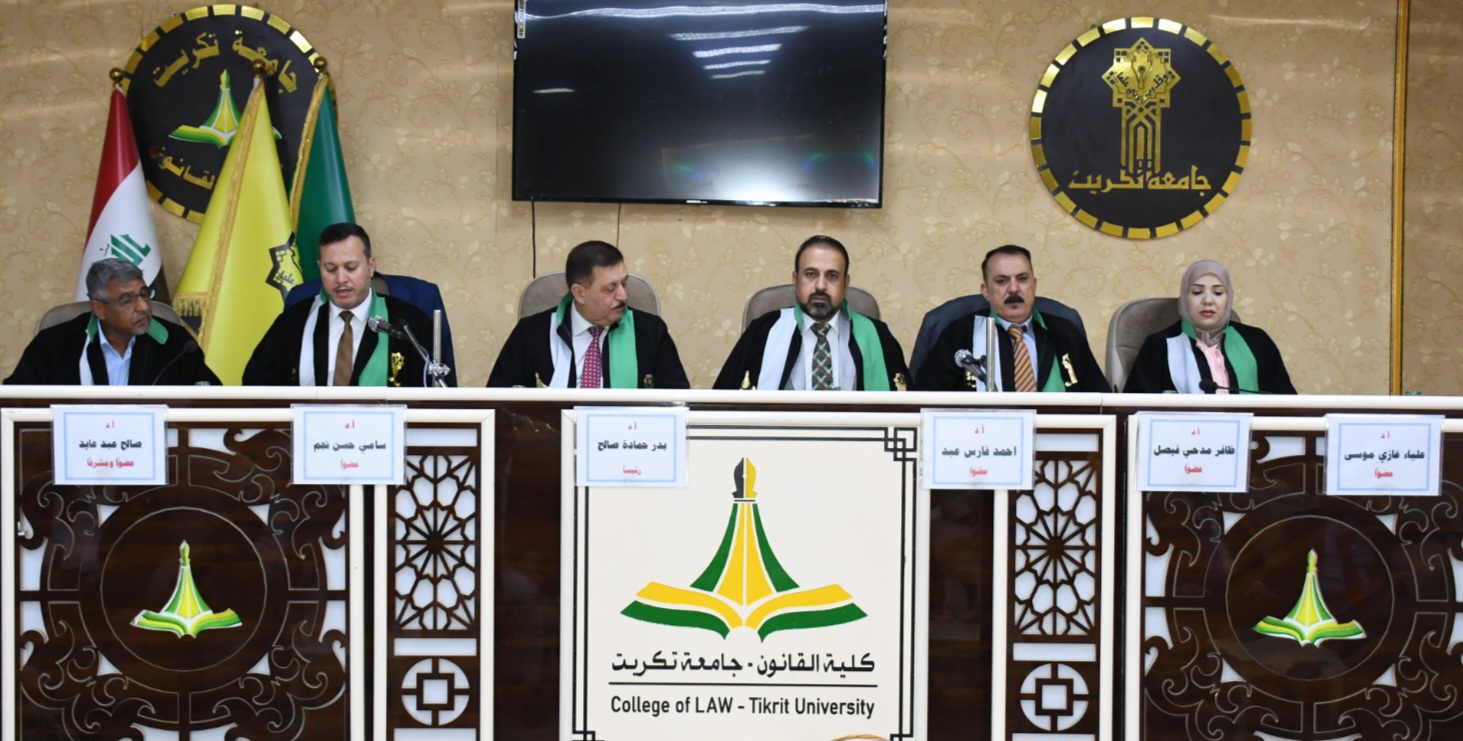 نوقشت في كلية القانون -جامعة تكريت اطروحة دكتوراه للطالب عثمان لطيف جاسم والموسومة "الاشكاليات الحديثة في الوظيفة العامة وفاعلية الإدارة في معالجتها في العراق" صباح يوم الاثنين الموافق 5-8-2024 على قاعة الشهيد ضامن العبيدي وقد تألفت اللجنة من السادة المدرجة اسمائهم ادناه