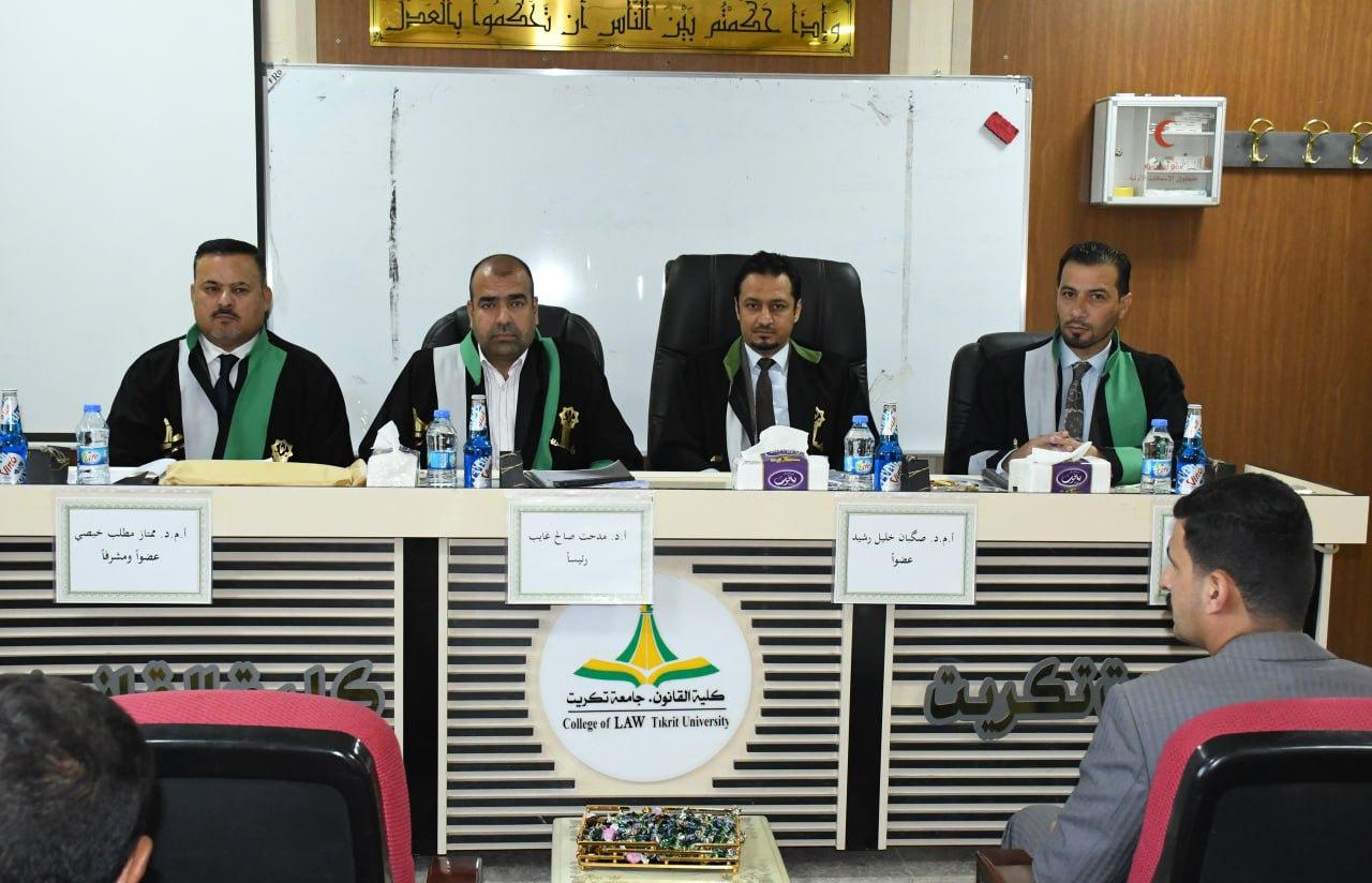 1- أ.د. مدحت صالح غايب/ استاذ في قانون التجاري/ جامعة تكريت- كلية القانون/ رئيساً.