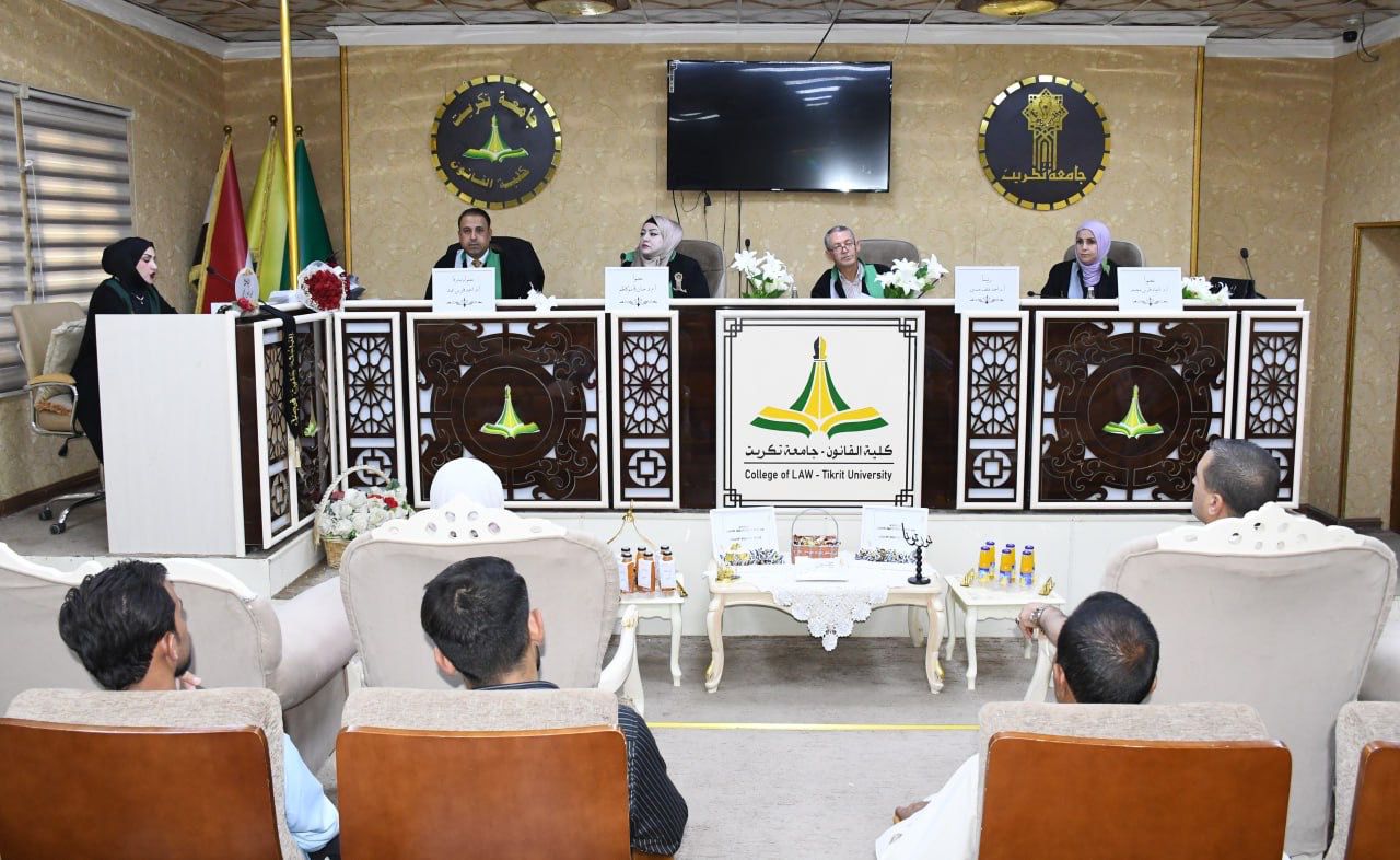 نوقشت في كلية القانون - جامعة تكريت رسالة ماجستير في قانون العمل للطالبة (حنين فيصل عبدالله العجيلي) والموسومة ب (الحماية القانونية لعمالة الأحداث من الاستغلال الاقتصادي في القانون العراقي في الماجستير العام- قانون العمل) وذلك على قاعة الشهيد الدكتور ضامن العبيدي في مبنى الكلية صباح يوم الخميس الموافق 17-7-2025.
