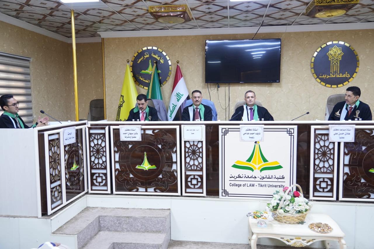 نوقشت في كلية القانون - جامعة تكريت رسالة ماجستير في القانون العام للطالب (سداد جمال رشيد) والموسومة ب (التنظيم القانوني للفضاء الخارجي بين السيادة الوطنية والمصلحة الدولية (دراسة في معايير الاستخدام وحقوق الدول) وذلك على قاعة الشهيد الدكتور ضامن العبيدي صباح يوم الاحد الموافق 21-9-2025.