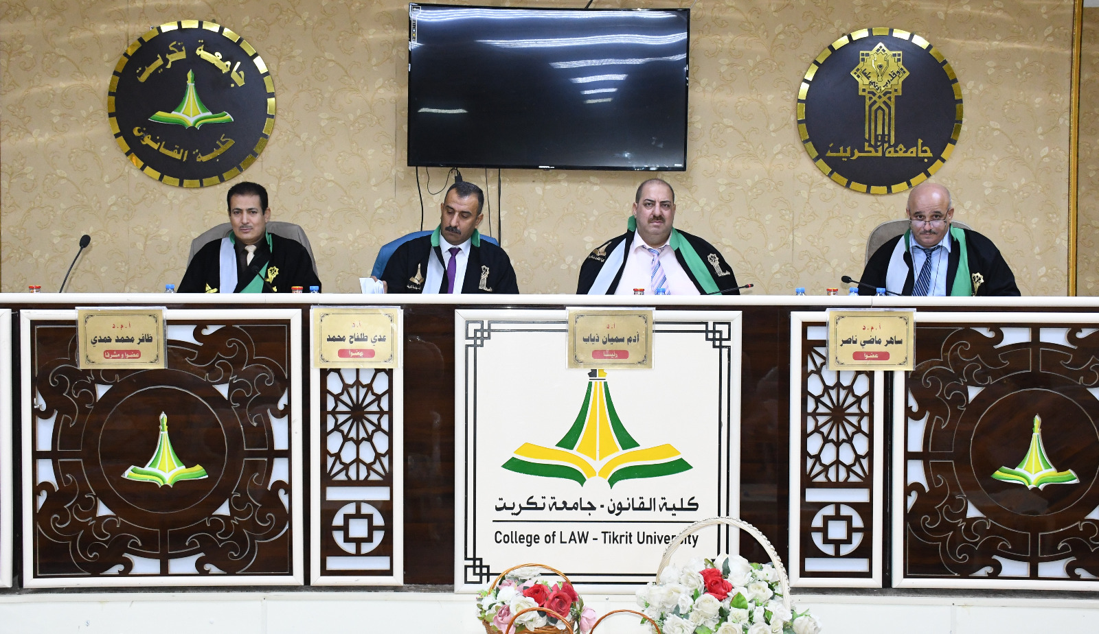 نوقشت في كلية القانون - جامعة تكريت رسالة ماجستير في قانون العمل للطالب (ثائر صبر عبدالرزاق) والموسومة ب (اصرار محكمة الموضوع على قراراتها واحكامها المنقوضة - دراسة مقارنة) وذلك على قاعة الشهيد الدكتور ضامن العبيدي في مبنى الكلية صباح يوم الثلاثاء الموافق 29-7-2025.