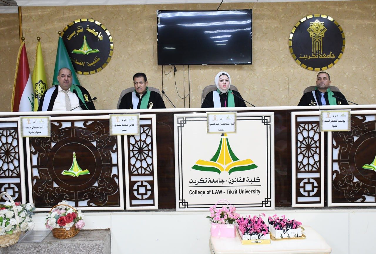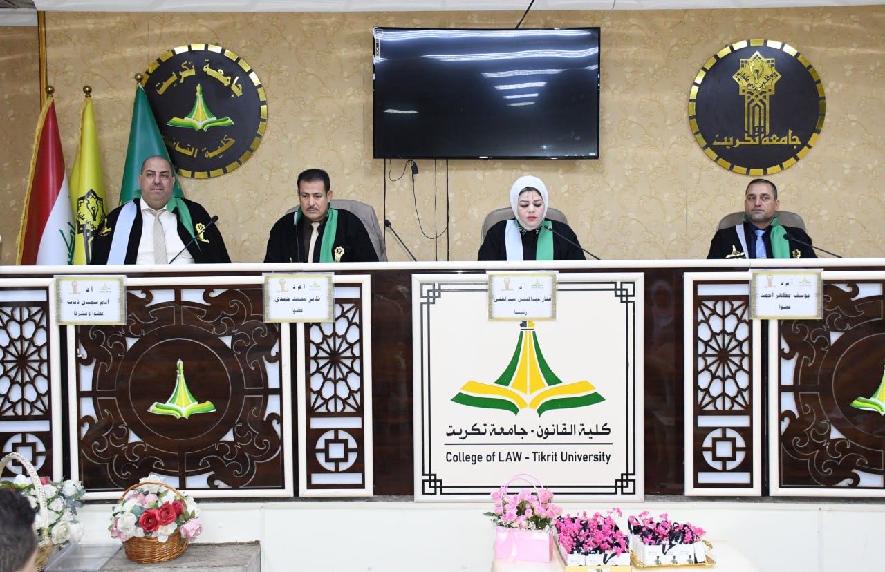 نوقشت في كلية القانون - جامعة تكريت رسالة ماجستير للطالبة ( انفال باسم هادي ) والموسومة ب ( دور الرضا في الجرائم الواقعة على الاخلاق ) وذلك على قاعة الشهيد الدكتور ضامن العبيدي صباح يوم الخميس الموافق 3-7-2025