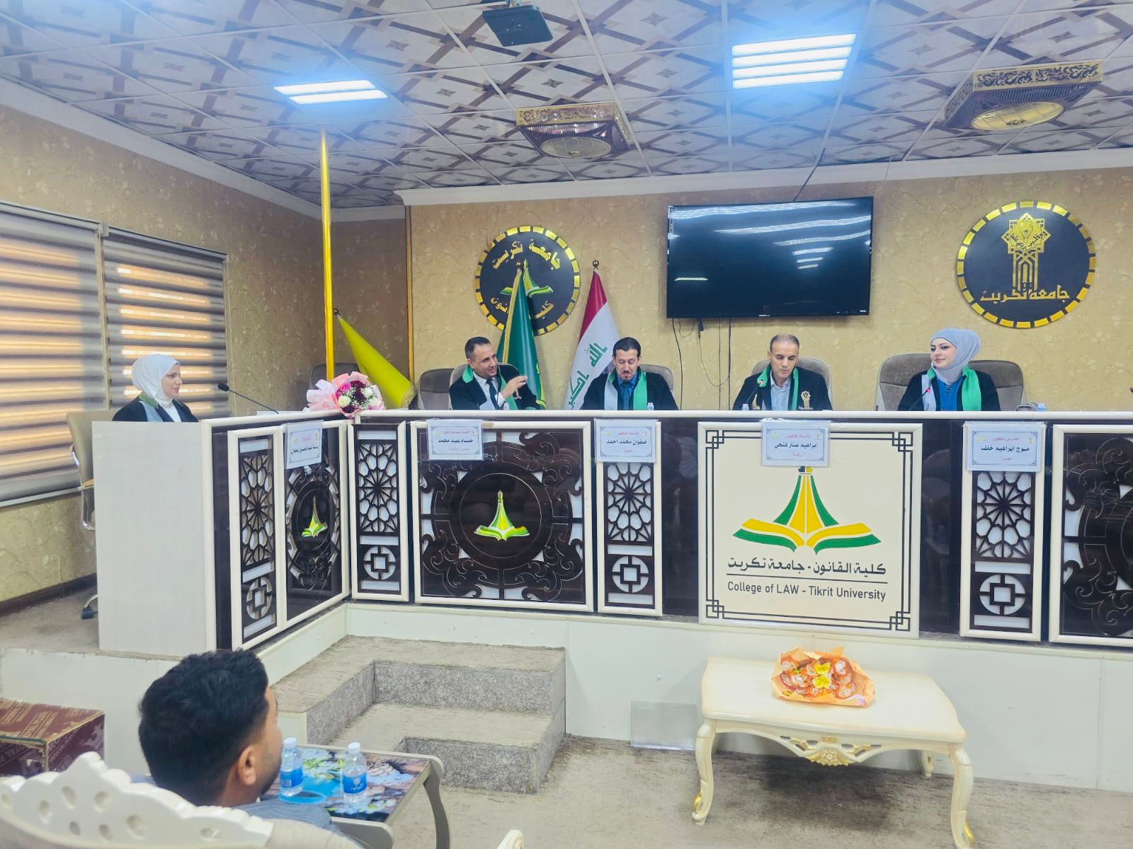 نوقشت في كلية القانون - جامعة تكريت رسالة ماجستير في القانون الخاص للطالبة ( ردسة عبد الحسين علوان) والموسومة ب (حق الخصوصية في وسائل الاتصال الهاتف المحمول - دراسة مقارنة) وذلك على قاعة الشهيد الدكتور ضامن العبيدي في مبنى الكلية صباح يوم السبت الموافق 6-9-2025.