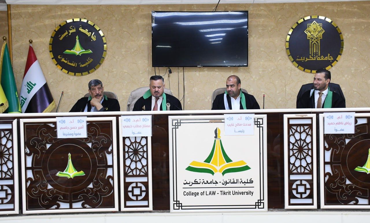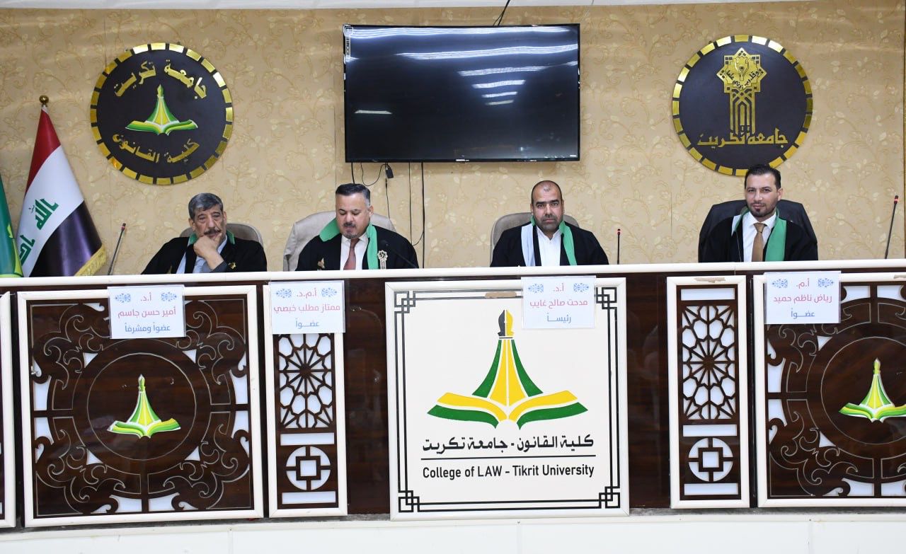 نوقشت في كلية القانون - جامعة تكريت رسالة ماجستير في القانون الخاص للطالب (أوس حسن ظاهر ) والموسومة ب (خصوصية التحكيم التجاري في سوق الاوراق المالية - دراسة مقارنة) وذلك على قاعة الشهيد الدكتور ضامن العبيدي صباح يوم الخميس الموافق رسالة ماجستير في كلية القانون-جامعة تكريت تدرس خصوصية التحكيم التجاري في سوق الاوراق المالية - دراسة مقارنة.