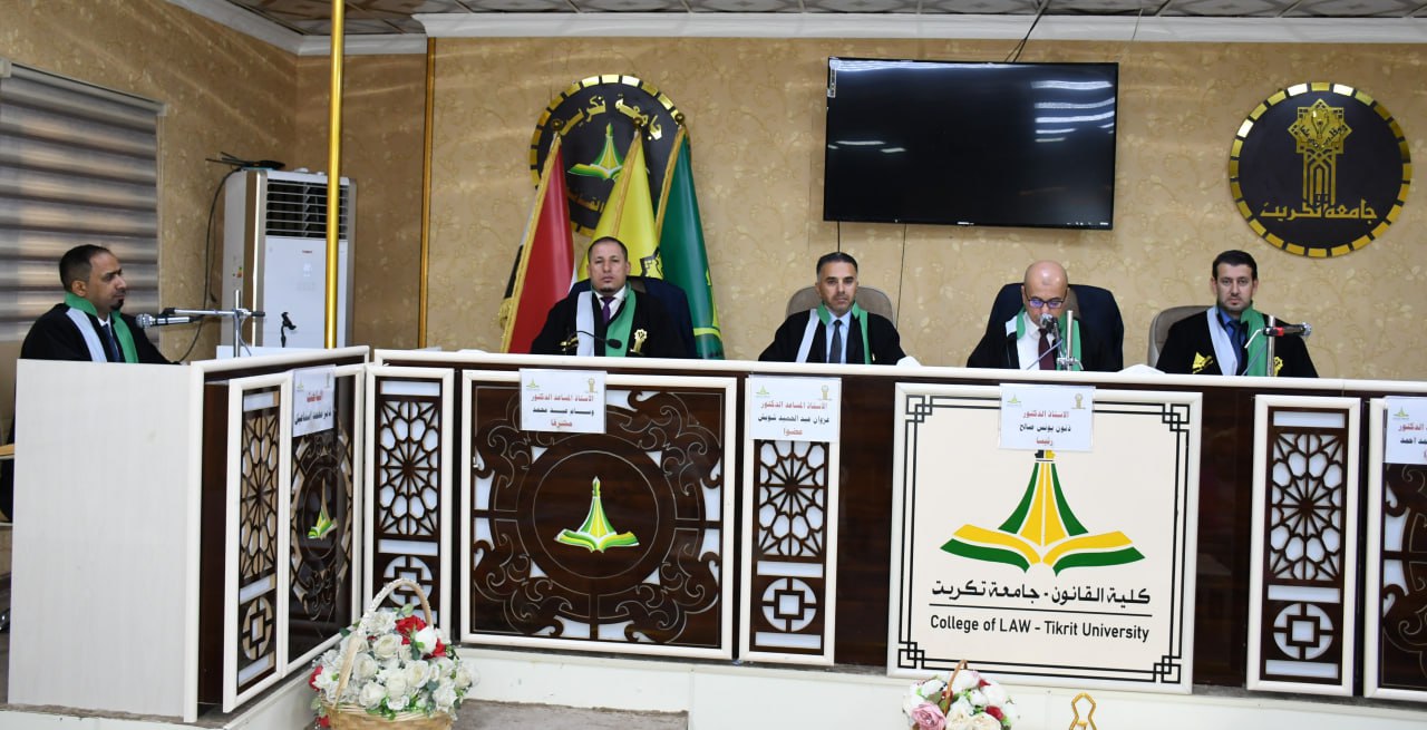 نوقشت في كلية القانون - جامعة تكريت رسالة ماجستير في القانون الخاص للطالب (ثامر محمد اسماعيل ) والموسومة ب (الضرر الناشئ عن الاختراق الالكتروني- دراسة مقارنة. ) وعلى قاعة الشهيد الدكتور ضامن العبيدي في مبنى الكلية صباح يوم الاثنين الموافق 9-9-2024.