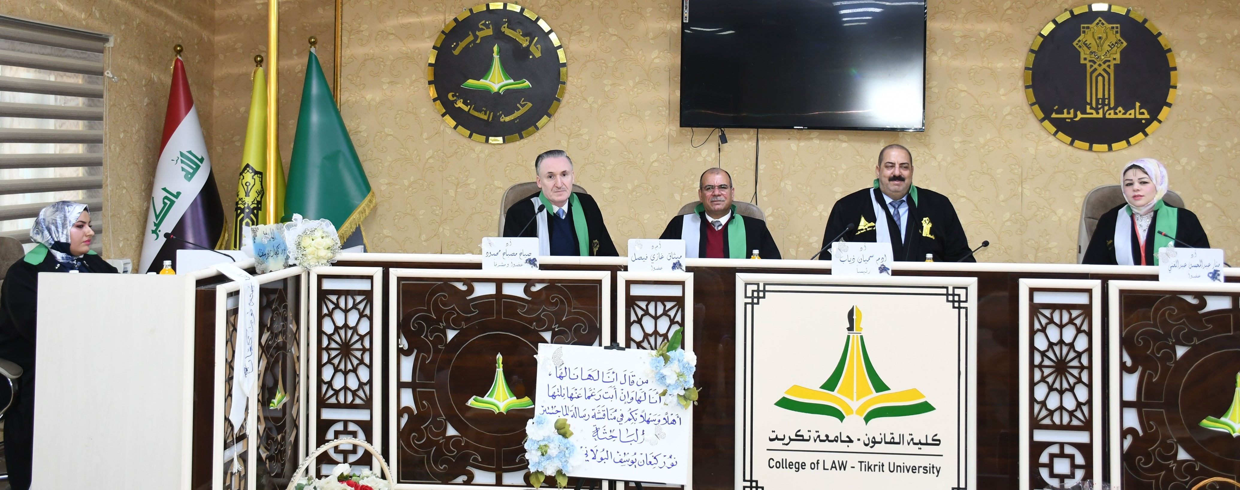 نوقشت في كلية القانون - جامعة تكريت رسالة ماجستير في القانون العام للطالبة (نور كنعان يوسف) والموسومة ب (الجرائم الماسة بسعر صرف لعملة الوطنية) وعلى قاعة الشهيد الدكتور ضامن العبيدي صباح يوم الاحد الموافق 23-2-2025.
