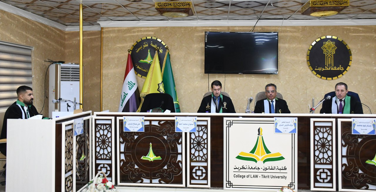 نوقشت في كلية القانون - جامعة تكريت رسالة ماجستير في القانون الخاص للطالب ( جبار مجيد عواد ) والموسومة ب ( المسؤولية المدنية للدولة في التعويض عن الاعمال القضائية - دراسة مقارنة. ) وذلك على قاعة الشهيد الدكتور ضامن العبيدي في مبنى الكلية صباح يوم الاربعاء الموافق 28-8-2024.