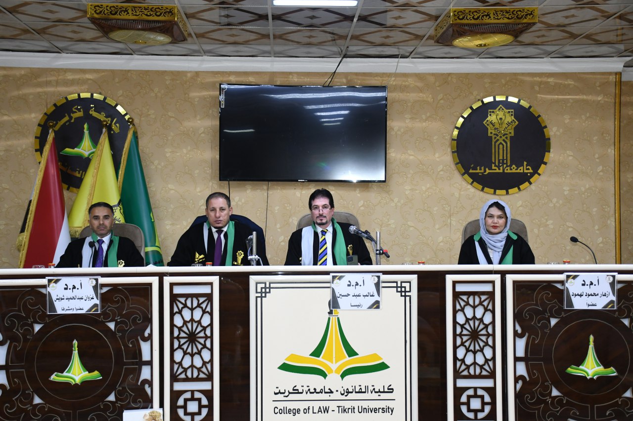 نوقشت في كلية القانون - جامعة تكريت رسالة ماجستير في القانون الخاص للطالب (محمد نامس علي) والموسومة ب (المسؤولية المدنية للشركة عن التصرف في شريحة الهاتف النقال - دراسة مقارنة) وعلى قاعة الشهيد الدكتور ضامن العبيدي في مبنى الكلية صباح يوم الخميس الموافق 12-9-2024.