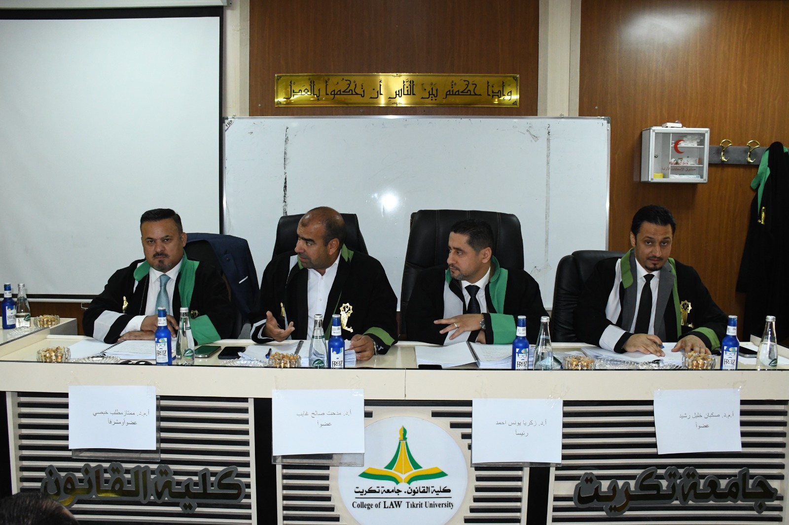 1- أ.د.زكريا يونس احمد/ استاذ في القانون التجاري الخاص / جامعة تكريت- كلية القانون/ رئيساً.