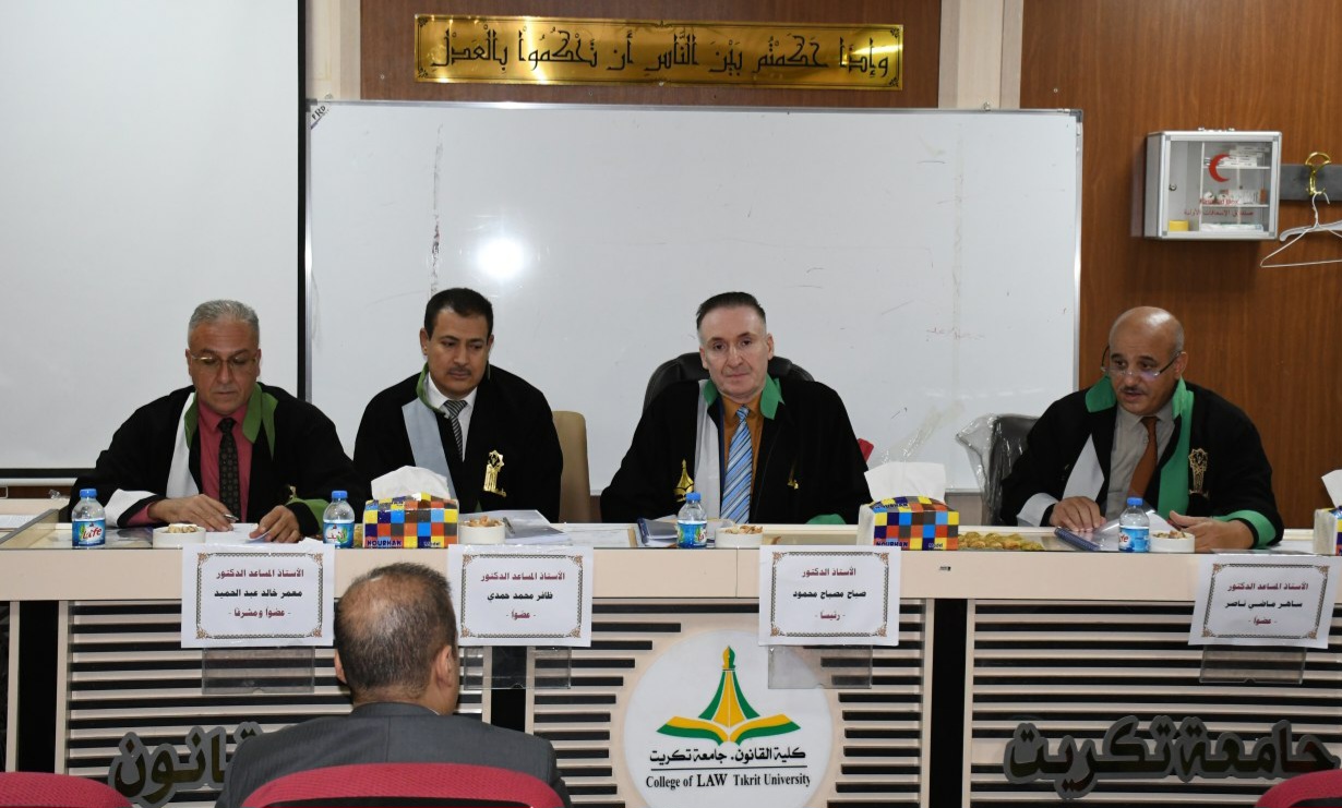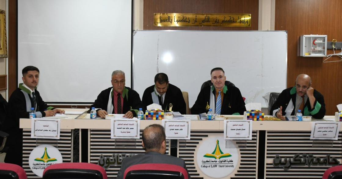نوقشت في كلية القانون - جامعة تكريت رسالة ماجستير في القانون الجنائي للطالب (نيسان رعد مهدي) والموسومة ب (المواجهة الجنائية لختان الاناث) وذلك في مبنى الكلية صباح يوم الخميس الموافق 5-9-2024.