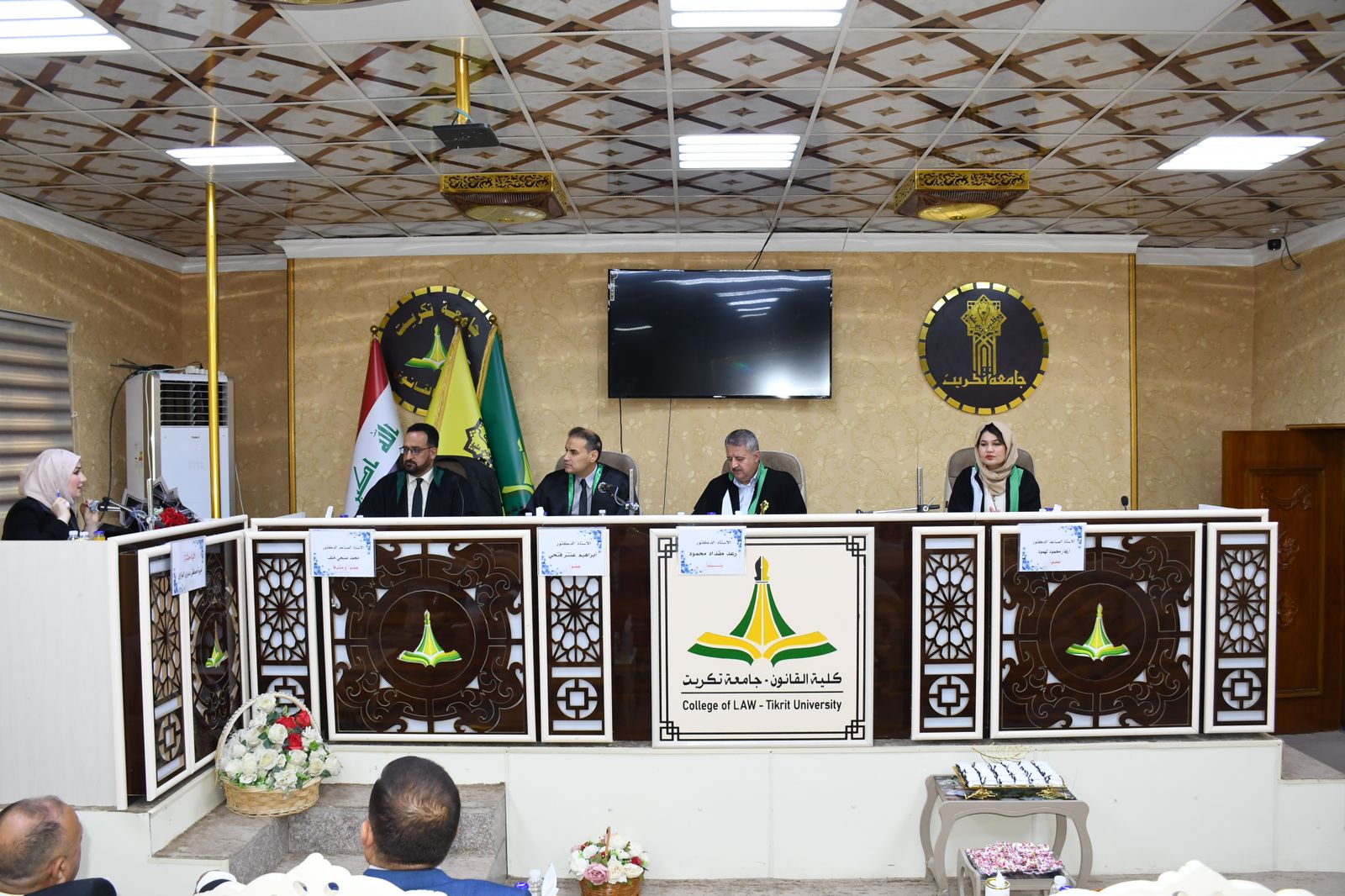 نوقشت في كلية القانون - جامعة تكريت رسالة ماجستير في القانون الخاص للطالبة (اميرة مصطفى صبري) والموسومة ب (اعتبارات الصلة المكانية في مسائل الجنسية "دراسة مقارنة") وذلك على قاعة الشهيد الدكتور ضامن العبيدي في تمام الساعة التاسعة صباحا الموافق 13-6-2024