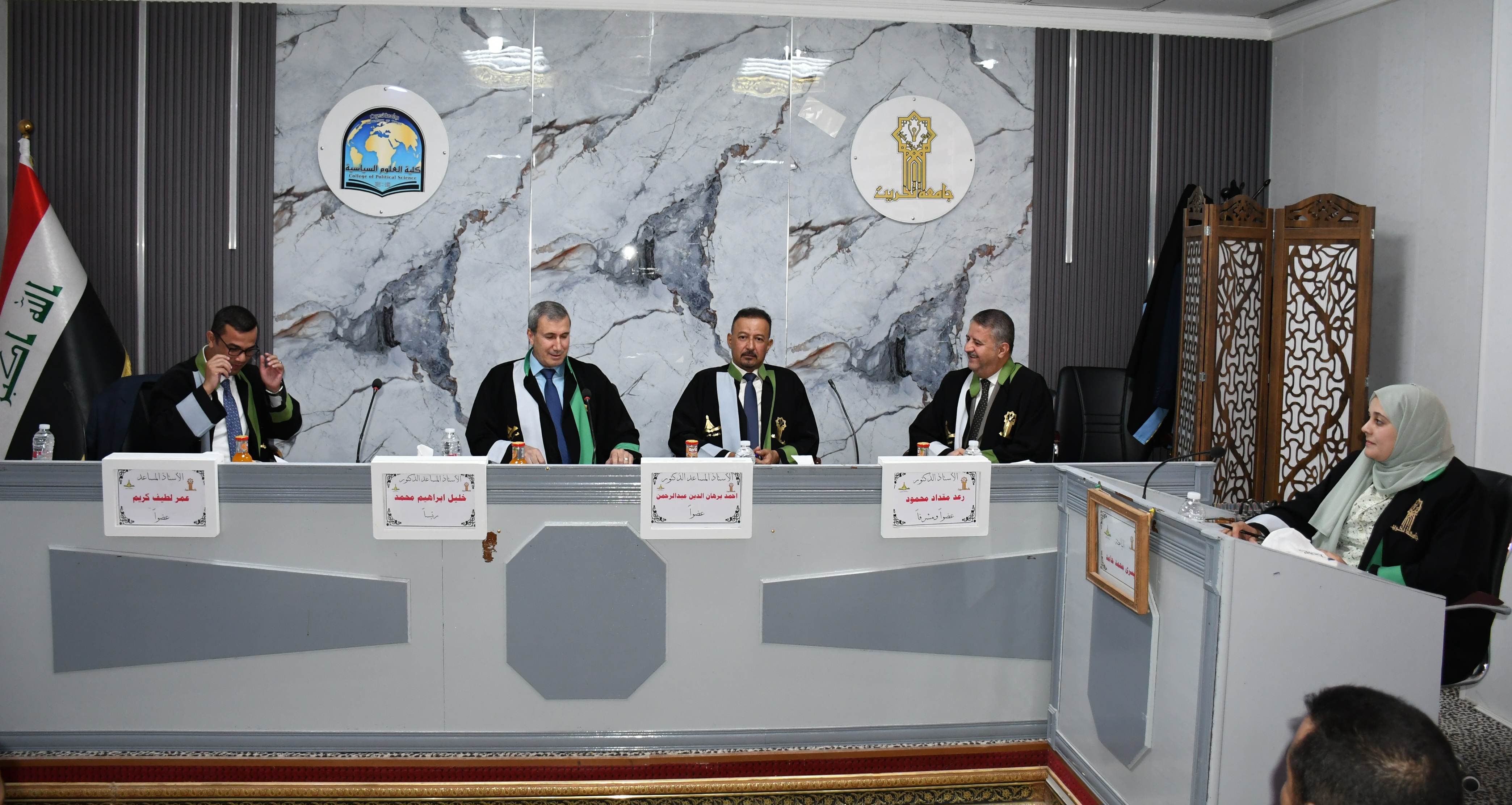 نوقشت في كلية القانون - جامعة تكريت رسالة ماجستير في القانون الخاص للطالبة (يسرى محمد حامد) والموسومة ب(دور قواعد الاختصاص التشريعي والقضائي في حماية حقوق المرأة - دراسة مقارنة ) في مبنى كلية العلوم السياسية صباح يوم الخميس الموافق 19-9-2024.